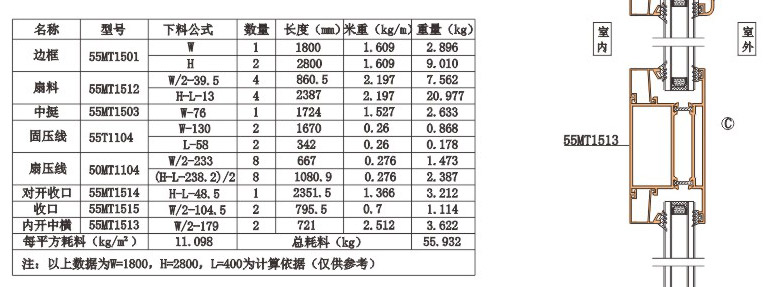 名稱:HC 55MT平開門